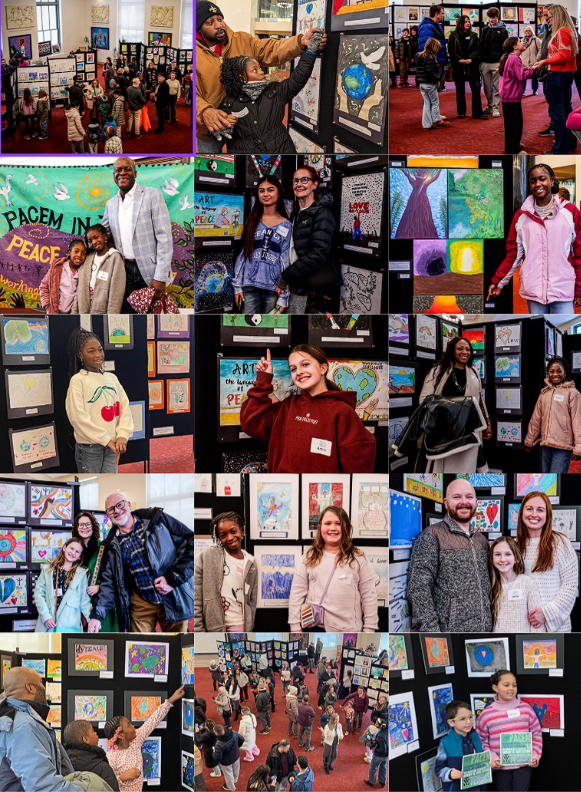 | 460 students from more than 30 Delaware schools and community organizations answered those questions by submitting inspiring artwork for Pacem in Terris’s 10th annual Visionary Peace Youth Art Exhibition. Over 400 people attended the exhibition at the Wilmington Library, showcasing a diverse collection of beautiful, original, inspiring visions and messages of peace. From young artists, between 5-18 years old from public, private, and charter schools along with community groups. |